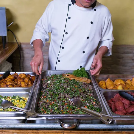 Gæsterne kan nyde deres morgenmåltid på restauranten. Hotel har en a la carte-restaurant og en swim-up bar. Restaurante Rana Roja og Down to Earth Coffee Shop ligger 10 minutters gåtur væk og tilbyder nogle af de bedste retter i La Fortuna.